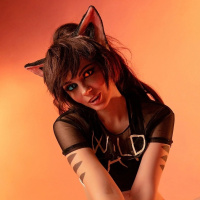 a cosplay outfit that features elements commonly associated with cats. This includes