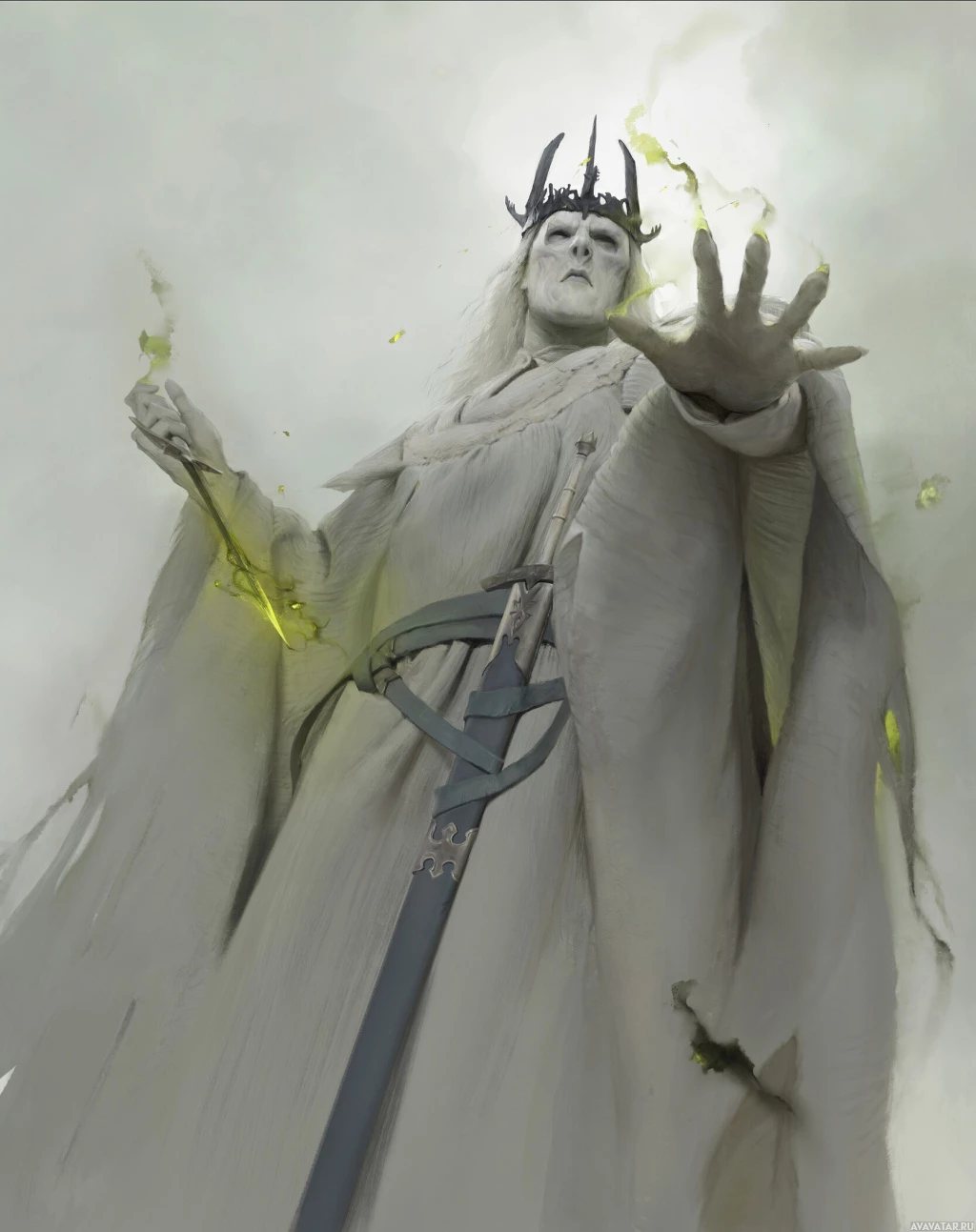 a fantasy character that appears to be inspired by the lore of Middle-earth, specifically reminiscent of the Nazgûl, also known as the Ringwraiths. The character is shown with