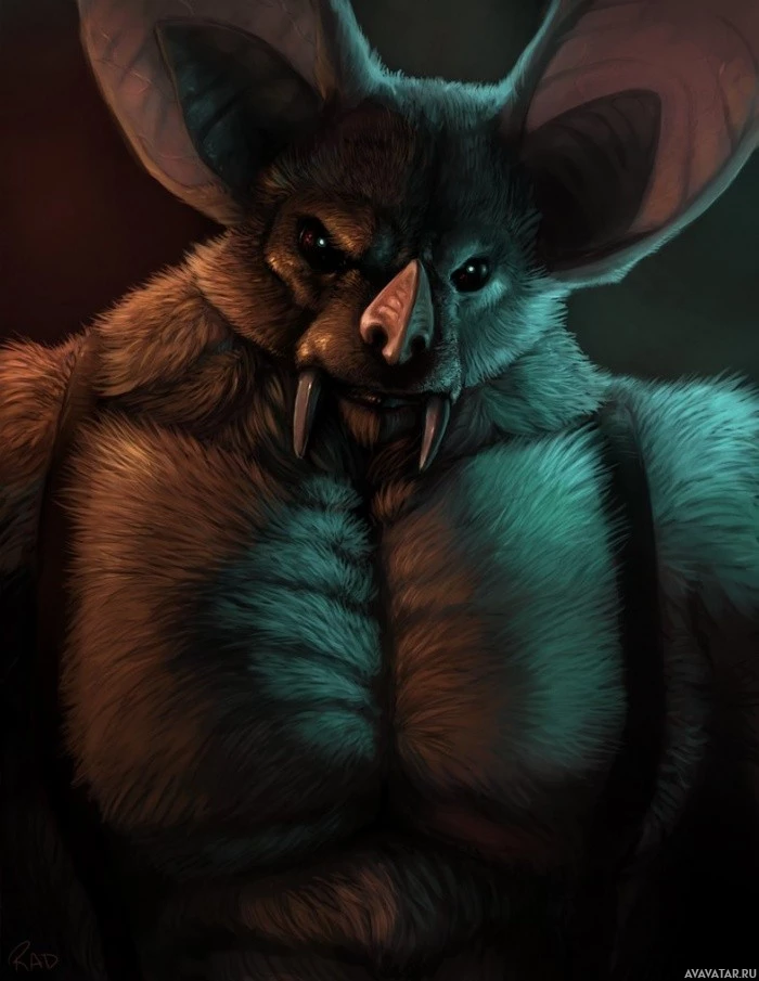 an illustrated character that appears to be a combination of a vampire and a bat. It has the features commonly associated with bats, such as