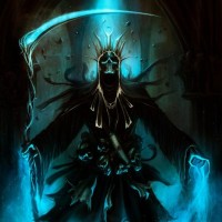 The image depicts a fantasy-themed character who appears to be a figure of death or