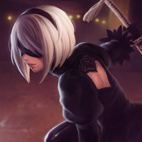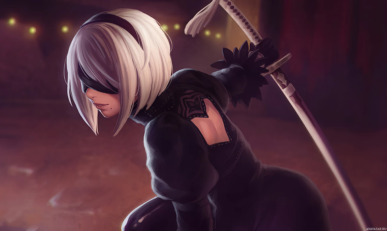 The image features an animated character known as "2B" from