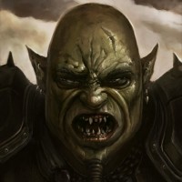 sharp teeth visible in its expression. It's wearing armor and a helmet, which is typical for orcs, who are often depicted as fierce warriors in