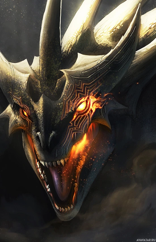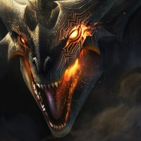 red eyes, which adds to its intimidating presence. The image is likely part of a fantasy genre or could be related to a video game, movie, or artwork inspired by