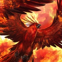 a mythical bird that is cyclically reborn or regenerated. In this depiction, the phoenix has vibrant