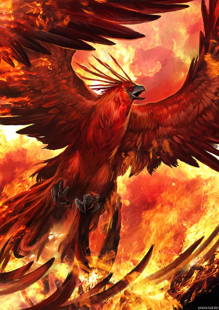 The image features a fantastical phoenix, which is