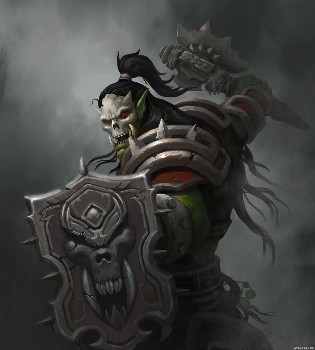 a fantasy character that appears to be an orc warrior from the "Warcraft" series. This character is known for being part of the Warcraft