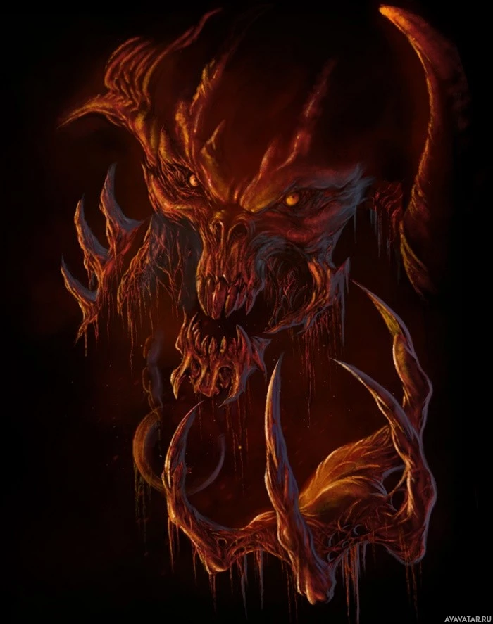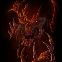 a night scene or underworld setting, which further enhances the sense of fear or danger. This creature would be commonly referred to as a horror or demon in the context of this image.