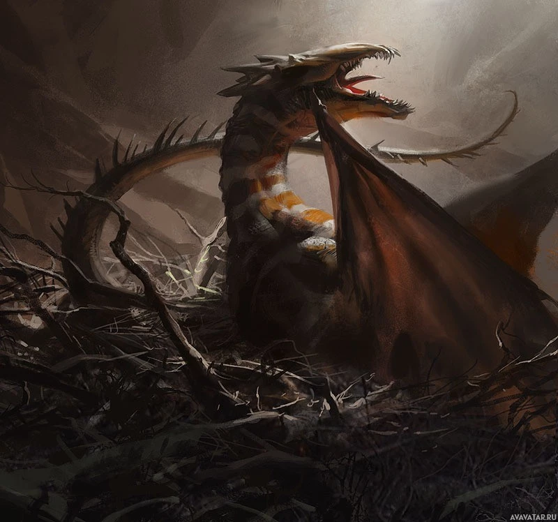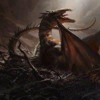 a fantasy scene featuring a dragon. It appears to be an artistic representation, possibly from