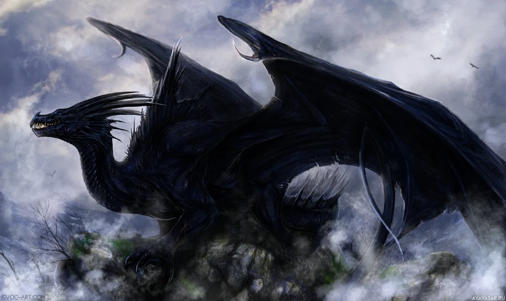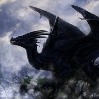 sharp teeth, and wings spread out, suggesting they are not just ordinary creatures but mythical ones often found in fantasy genres. The background is dark, with clouds that give an impression of