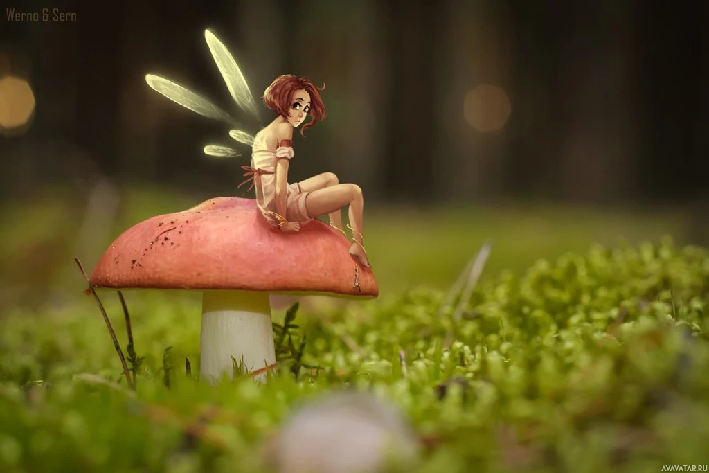 феи | Красивые авы с феей | Fairies | Воображаемая фея, покоящаяся на грибе