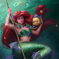 mermaid character, reminiscent of Ariel from the Disney movie "The Little Mermaid." She has