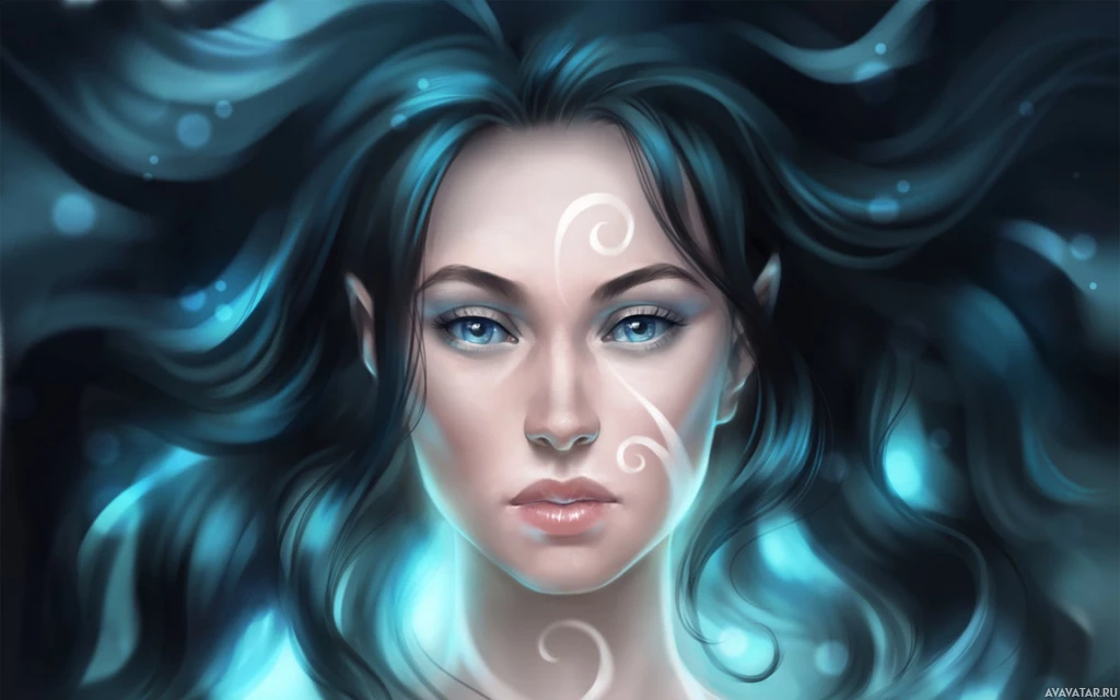 fantasy art, elves in literature, or characters from a story involving aquatic elements.