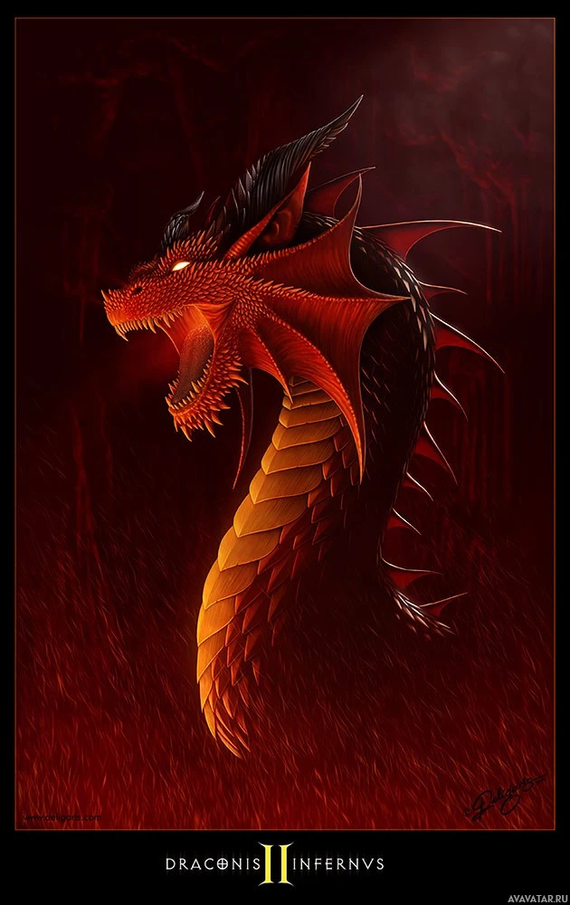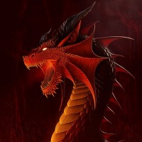 a fantasy dragon. It has a fierce appearance with sharp teeth, glowing eyes, and a detailed design that suggests it might be a character from