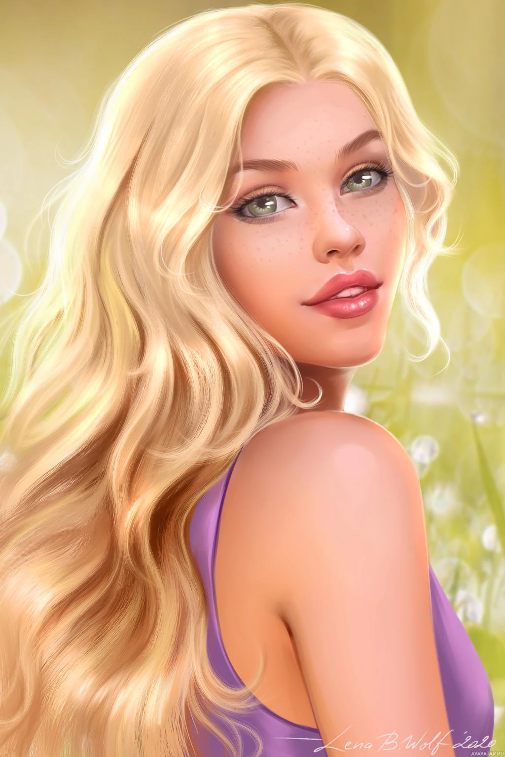 The image shows a 3D rendering of a blonde woman with