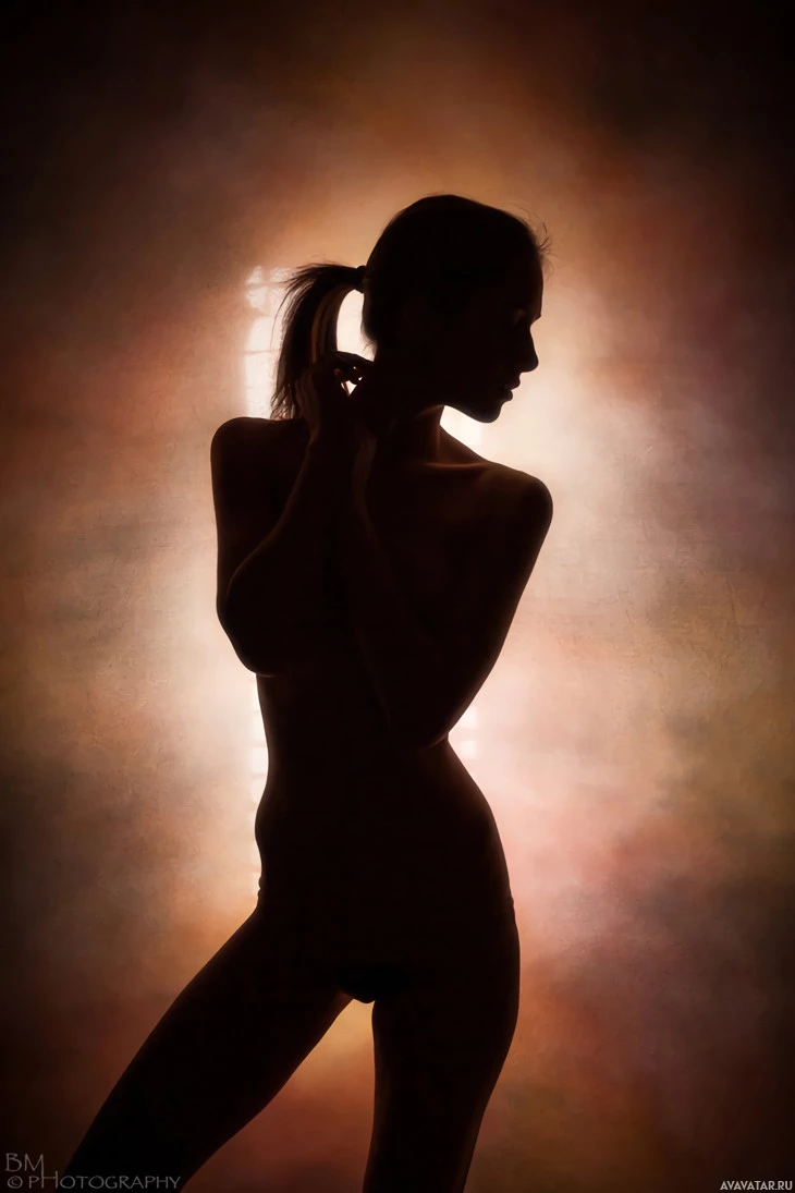 силуэты | Скачать аватары с силуэтом | Silhouettes | Обнаженный силуэт девушки с поднятыми волосами