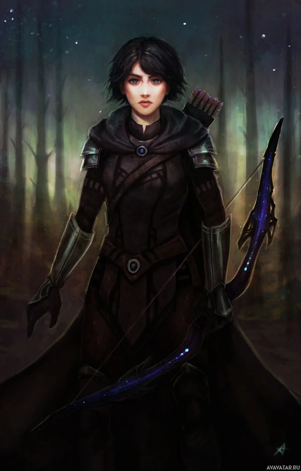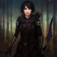 a fantasy setting or story. The character is a female with short