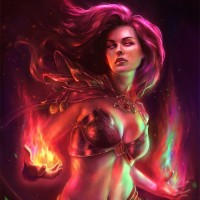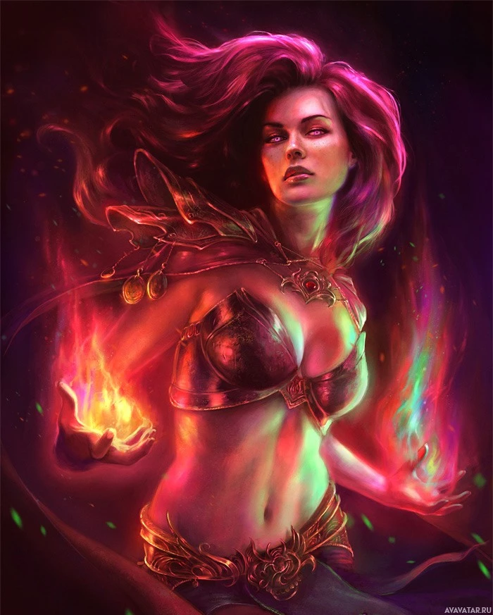 a fantasy character who appears to be a female warrior or mage. She has