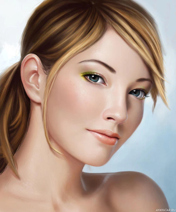 a soft gaze directed towards the viewer. The background is minimalistic and does not distract from her face.
