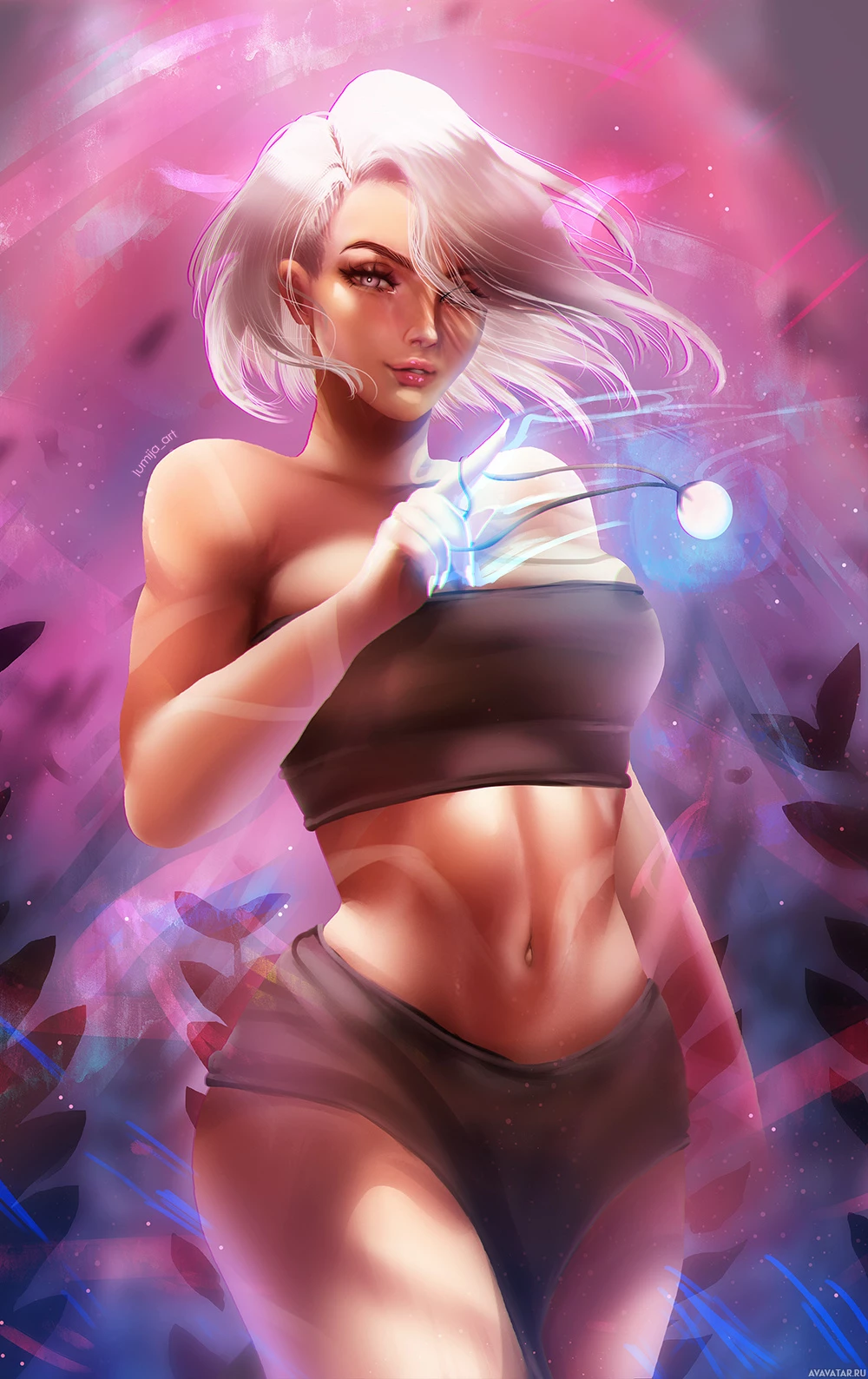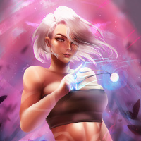 vibrant colors and appears to be set in a magical or futuristic environment, possibly indicating that the character has some sort of special powers or abilities associated with magic or energy.