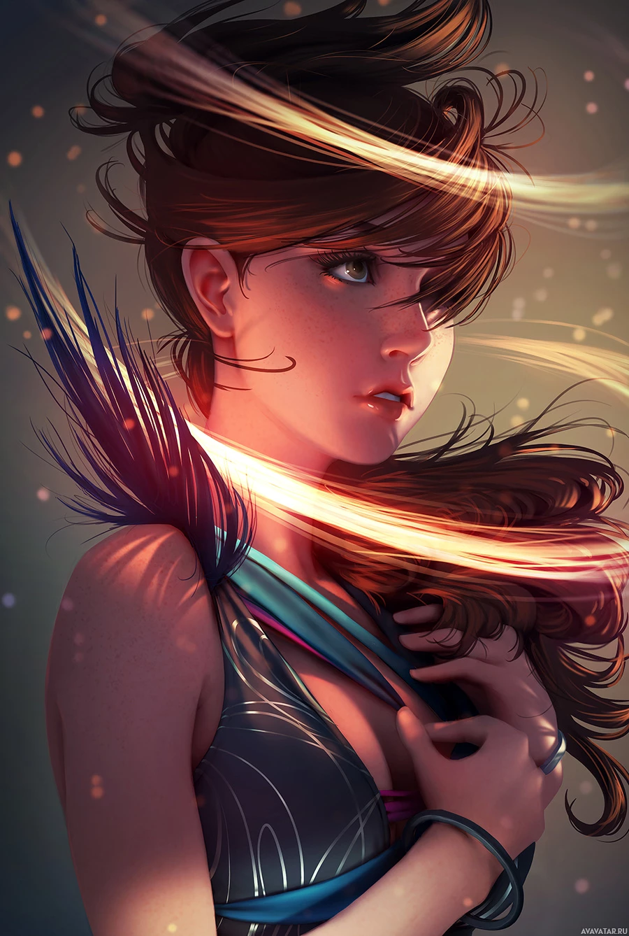 the hair movement. The background is minimalistic, focusing on the character without any distractions.