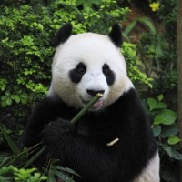 a calm expression, and its fur color is typical of pandas with distinctive black and white patches. It has