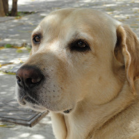 Retriever dog. This breed is known for its friendly, outgoing, and affectionate nature. The dog has a golden-brown coat, which is characteristic of the Labrador coloration, and appears to be sitting or standing calmly in
