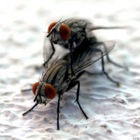 The image shows two mosquitoes, which are insects often associated with flying. They appear to be resting on a white surface that could be