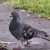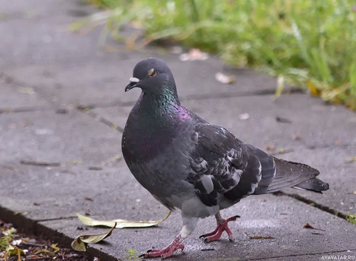 На картинке изображен голубь, который является птицей. Голуби известны своей способностью хорошо адаптироваться в городской среде и обычно встречаются на тротуарах или уступах. Этот голубь, кажется, идет по дорожке или тротуару.
