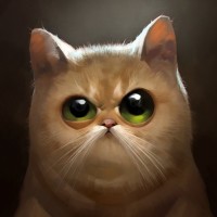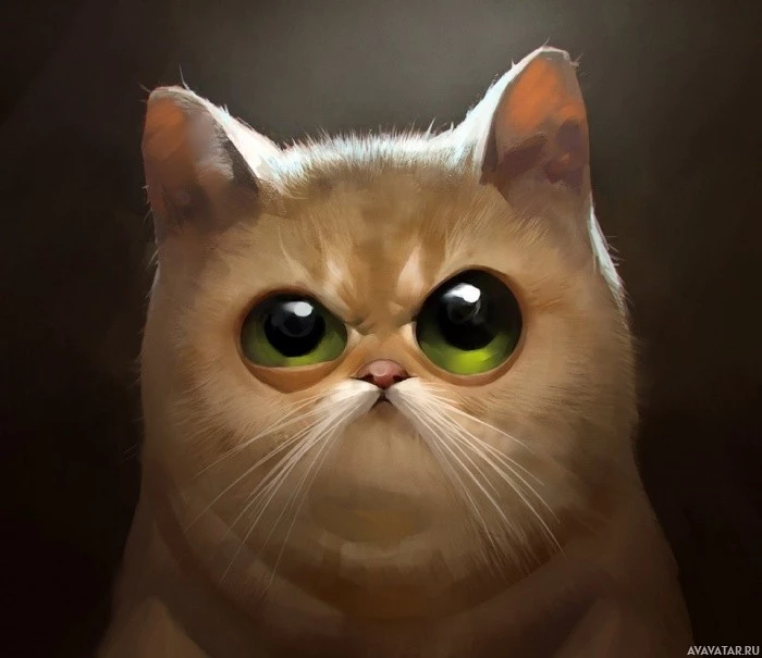 fur pattern and large, expressive eyes with a surprised or shocked look on its face. This kind of artwork can be found in various styles and media, such as digital painting or