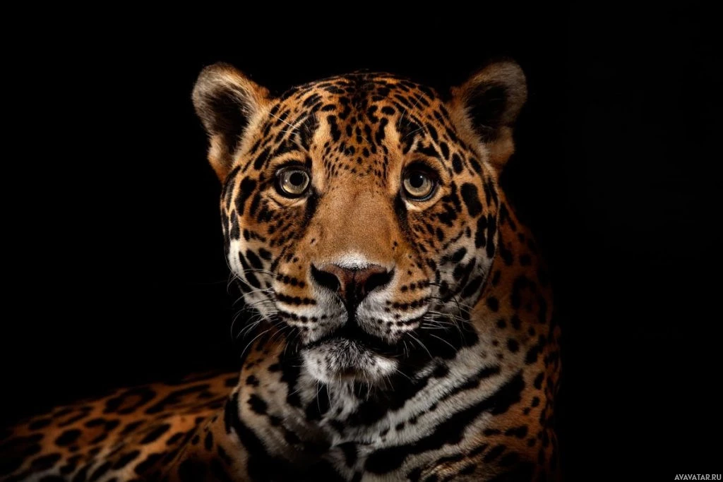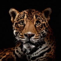 big cats like jaguars when they are focused on something. The jaguar's fur has distinct spots, typical of its species, and it seems to have