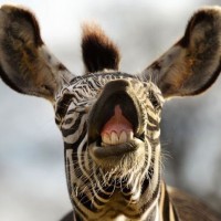 Картинка показывает зебру, стоящую с поднятыми ушами, как будто слушая или реагируя на что-то. Похоже, что он смотрит прямо на камеру или фотографа, создавая впечатление любопытства или осознания своего окружения.