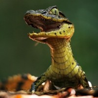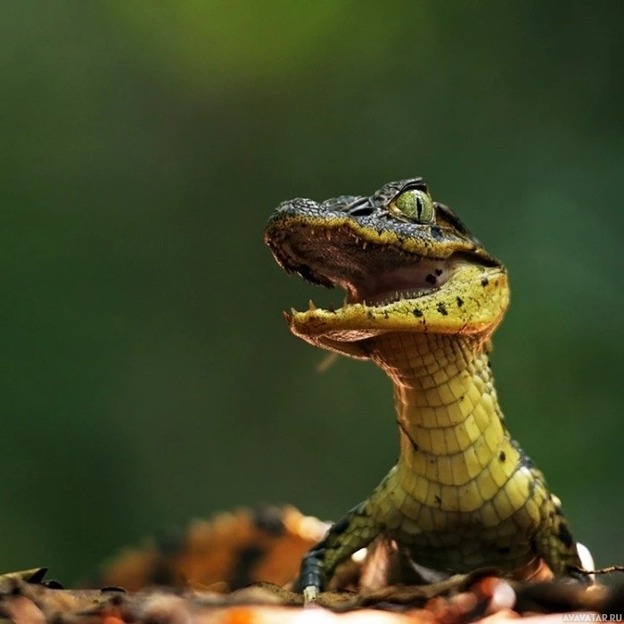 На фотографии изображен крокодил. Похоже, что это взрослый аллигатор с открытым ртом, возможно, с зубами или шипением. Фон размыт, но кажется, что это естественная среда, типичная для аллигаторов или крокодилов, предполагая, что это может быть из дикой природы или защищенной среды обитания.