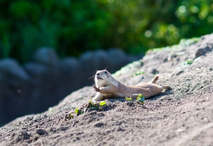 Картинка показывает суслика, покоящегося на какой-то грязи. По-видимому, он находится в дикой природе, возможно, на скалистой поверхности или насыпи почвы. Вокруг есть небольшие растения и зелень, предполагая, что это может быть в естественной среде обитания или области с некоторой растительностью.