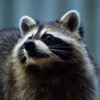 facial markings and bushy tails, and this one appears to have them prominently displayed. The background is not clearly visible due to the focus being on the raccoon.