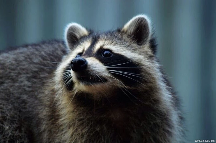 The image shows a raccoon looking directly at the camera. Raccoons are known for their distinctive