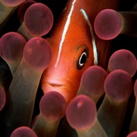 the tentacles of an anemone. This type of fish is known for its distinctive orange and
