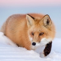 На снимке изображена лиса, идущая по заснеженной земле. Похоже, что он находится на открытом воздухе в течение зимнего сезона. Шерсть лисы красноватая, предполагая, что это может быть красный или северный вид лисы, обычно встречающийся в более холодном климате.