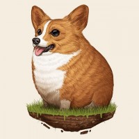 a corgi dog. It is stylized in a way that emphasizes its distinctive features such as the short legs, long body, and
