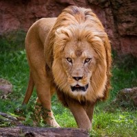 The image depicts a lion in its