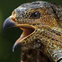 colorful skin of some reptiles that resemble the texture and pattern of an iguana's scales. This bird is likely found in
