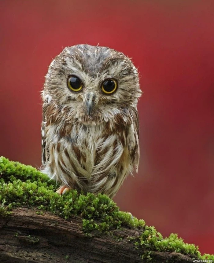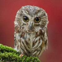 The image features an owl sitting on a branch or twig. It appears to be an alert and