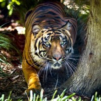 The image shows a tiger, which is an animal. The tiger appears to be in its