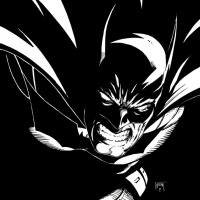 the Dark Knight of Gotham City. The style is reminiscent of traditional comic book artwork.