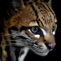 The image shows a close-up of an animal's face, which appears to be a jaguar due to its
