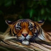 This image features a tiger. The tiger is sitting in what appears to be its