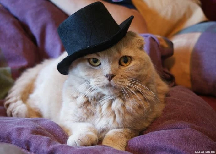 коты | Красивые авы с котом | Cats | Пушистая кошка наслаждается прожектором в стильной шляпе