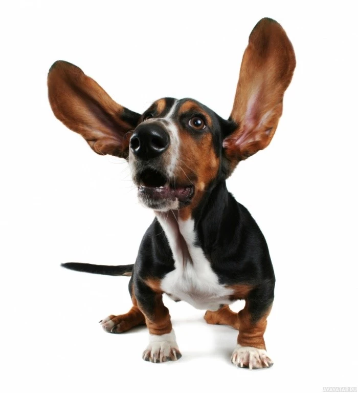 The image shows a dog, likely a dachshund based on its appearance. The dog's ears are flapping in the air, which might indicate excitement or