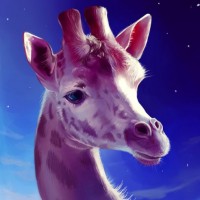 long neck visible, as well as its ossicones which are short horn-like structures on top of its head. The art style is cartoonish and whimsical, giving it a cute and playful appearance.