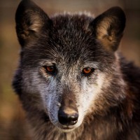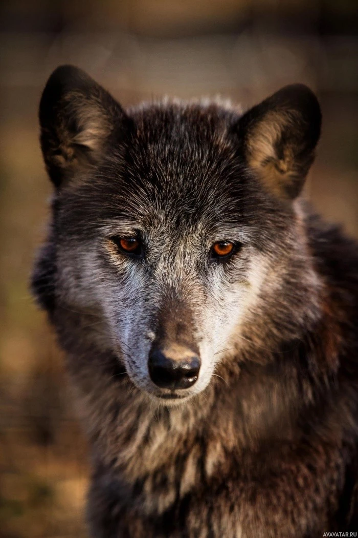 The image shows a wolf looking directly at the camera. It appears to be an adult with a full coat, indicating that it is likely in