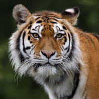 На картинке изображен тигр, который является большой дикой кошкой, характеризующейся своими отличительными черными полосами на оранжево-черном пальто. Этот тигр, кажется, отдыхает или делает паузу со спокойным выражением лица.